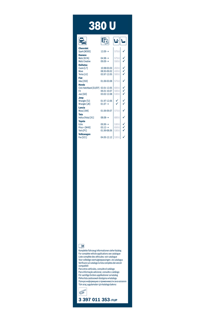 Ruitenwisserblad BOSCH 3 397 011 353