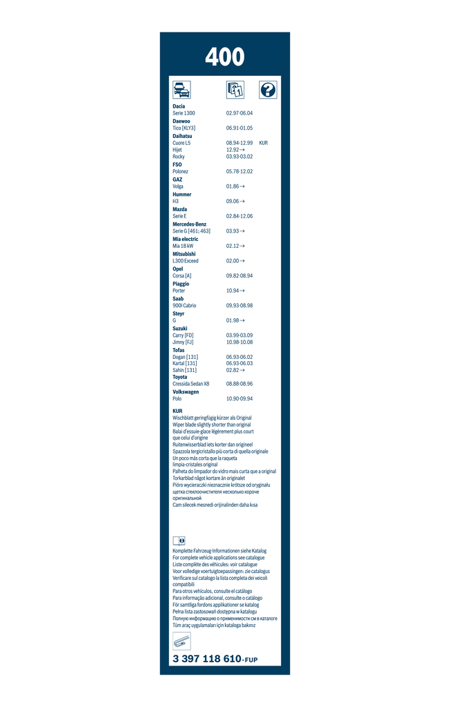 Ruitenwisserblad BOSCH 3 397 118 610