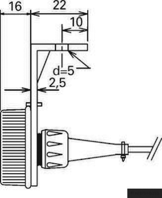 Met hoekvormige houder 90° naar binnen
