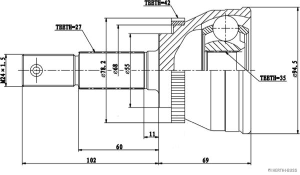 Homokineet rep.set HERTH+BUSS JAKOPARTS J2821143